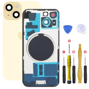 IPHONE 14, Apple, Pieces PortableVitre Arriere + Plaque metallique pour iPhone 14 Jaune +Aimants et Autocollant