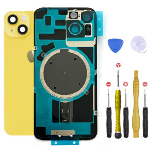 IPHONE 14, Apple, Pieces PortableVitre Arriere + Plaque metallique pour iPhone 14 Jaune +Aimants et Autocollant