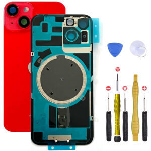 Apple, IPHONE 14, Pieces PortableVitre Arriere + Plaque metallique pour iPhone 14 Rouge +Aimants et Autocollant