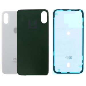 Vitre Arriere Remplacement iPhone XS Argent Blanc +Autocollant preinstalle
