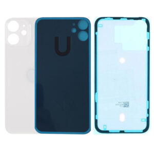 Vitre Arriere Remplacement iPhone 12 Mini Blanc +Autocollant Preinstalle