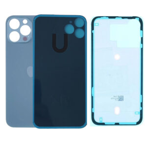 Vitre Arriere Remplacement iPhone 12 Pro Max Bleu +Autocollant preinstalle