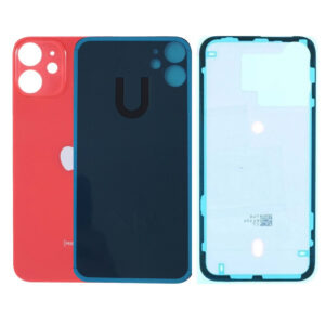 Vitre Arriere Remplacement iPhone 12 Mini Rouge +Autocollant Preinstalle