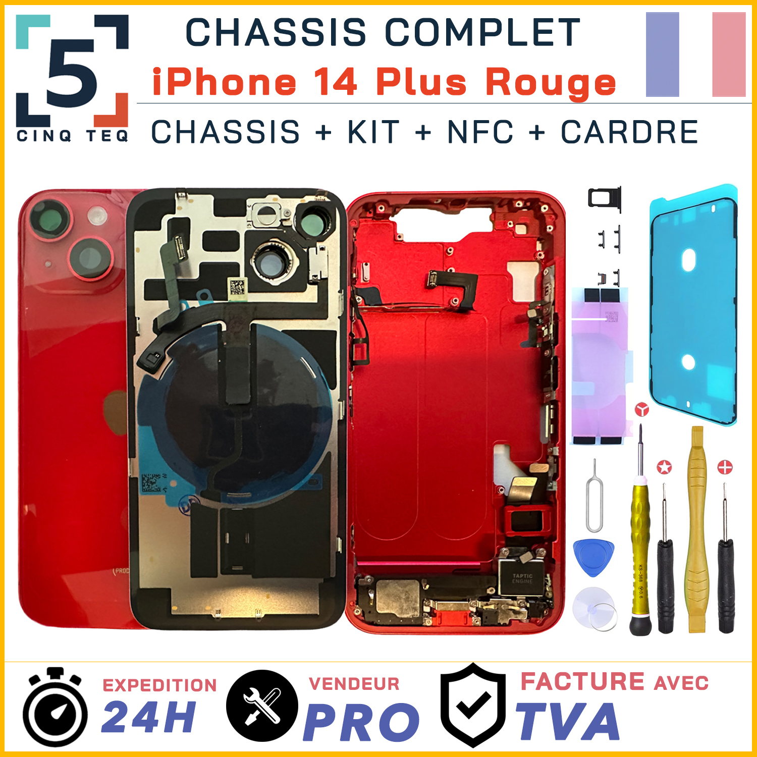 Chassis Complet Remplacement iPhone 14 Plus Rouge Red Arriere +Cadre NFC +Kit