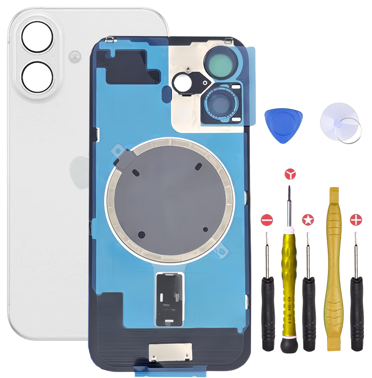 Vitre Arrière remplacement pour iPhone + Verre avec plaque métallique préinstallée – pas de NFC