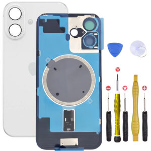 Vitre Arriere avec Plaque pour iPhone 16 Blanc +Aimants et autocollant